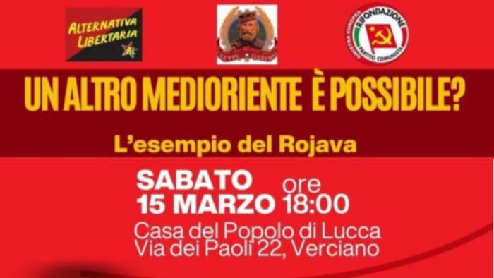 Un altro Medioriente è possibile? – Casa del Popolo Lucca 10 Marzo 202510 Marzo 2025 Nuovo evento Lucca Sabato 15 Marzo ore 18.00Casa del Popolo di LuccaUn altro Medioriente è possibile?L’esempio del Rojava